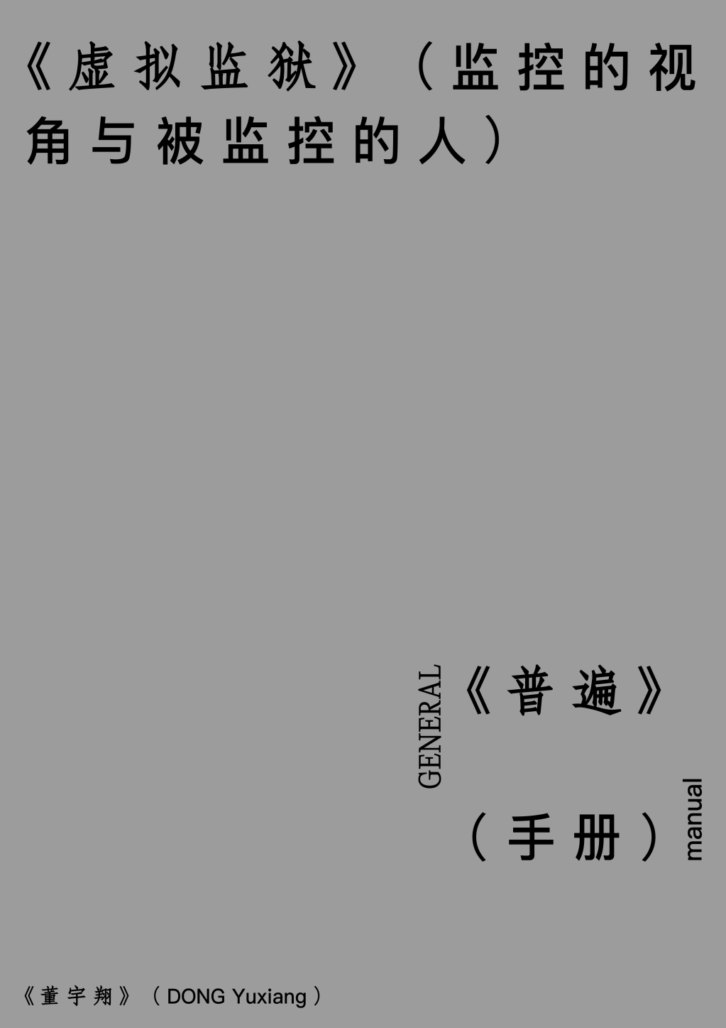 董宇翔现为美国弗吉尼亚联邦大学博士候选人,曾于北京电影学院和罗切斯特理工学院获艺术学士和艺术硕士学位。他的艺术实践和研究聚焦于艺术、科技与社会的交汇处,作品曾在北京 OCAT 研究中心、南京艺术学院美术馆和费城摄影艺术中心等地展出,2016年入围三影堂摄影奖。他曾在泰特利物浦等国际艺术机构和会议上发表研究论文并于2018年获国际艺术评论二等奖。